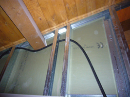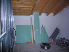 La soluzione adottata, per adesso non fotografata, è stata influita dalla massicia presenza di travi in spessore nel solaio.